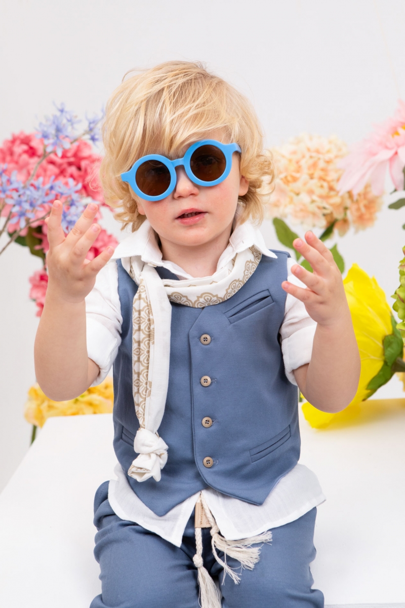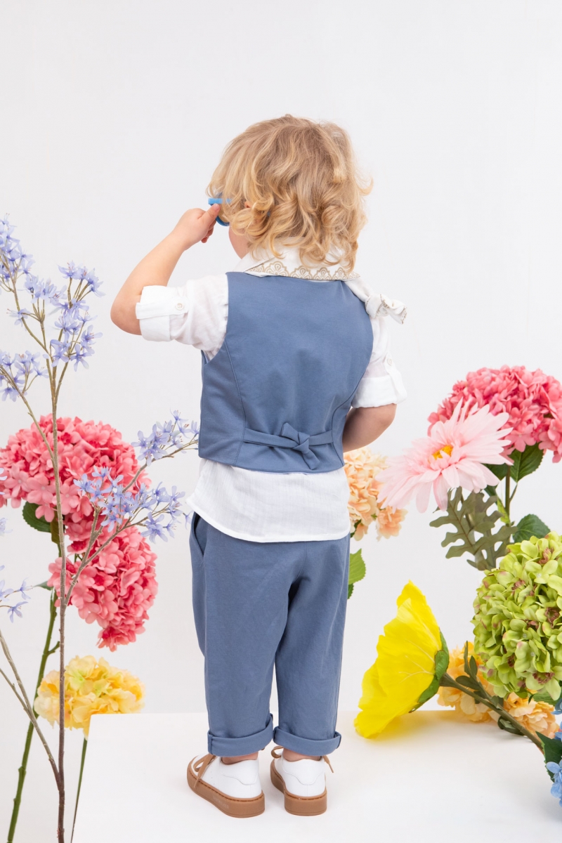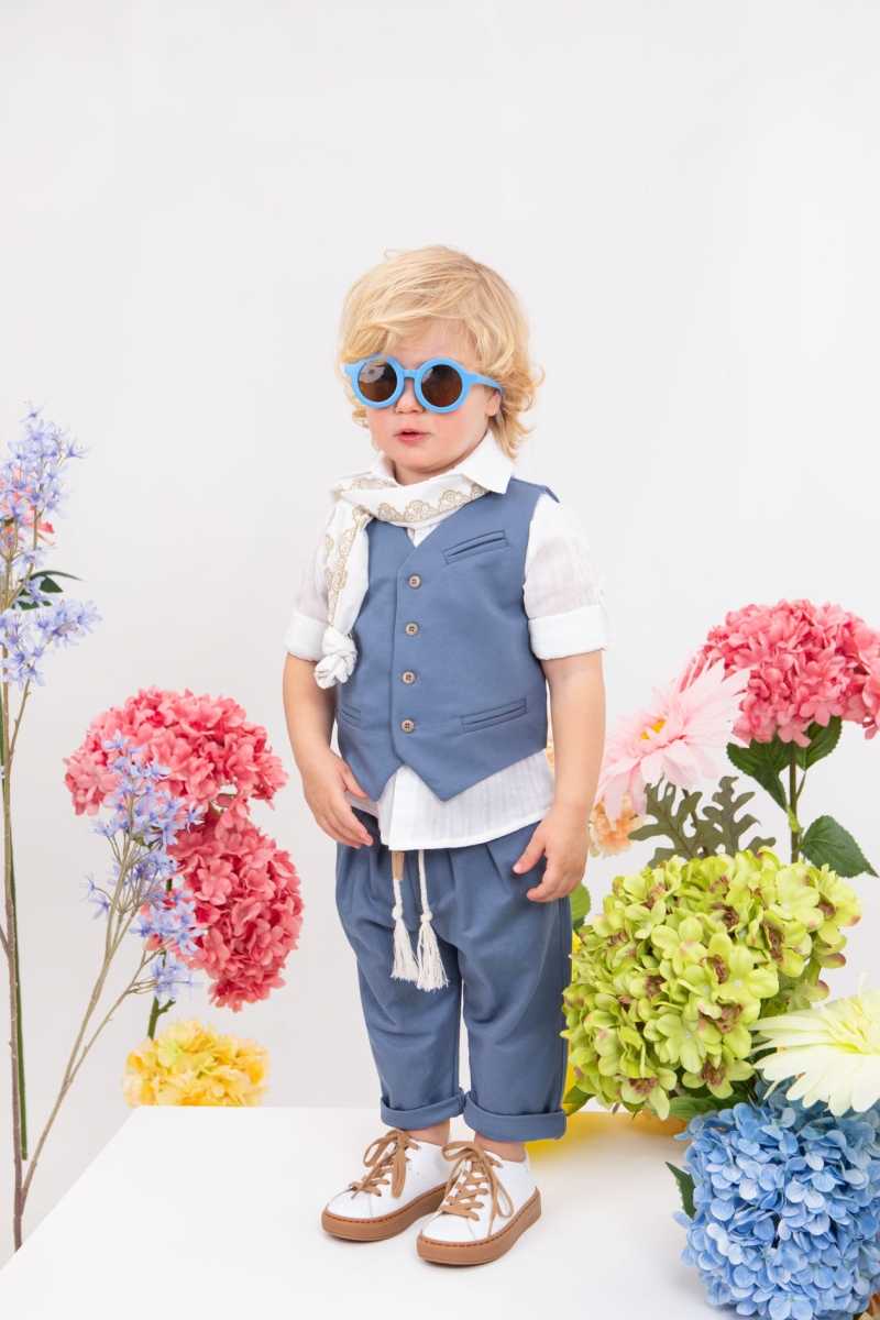 Ο Cristian είναι η επιτομή του κομψού για μοναδικές εμφανίσεις. Αποτελείται από πετρόλ παντελόνι εξαιρετικής ποιότητας , λευκό πουκάμισο και πετρόλ γιλέκο διακοσμημένο με μπεζ κουμπιά. Αξεσουάρ είναι το εκρού-μπεζ κορδόνι για ζώνη , το λευκό καπέλο και το λευκό printed φουλάρι του.
