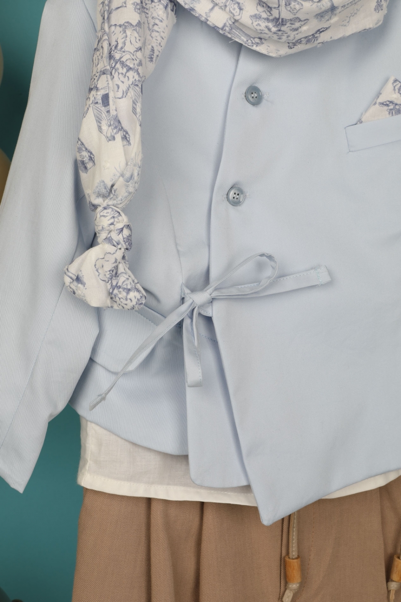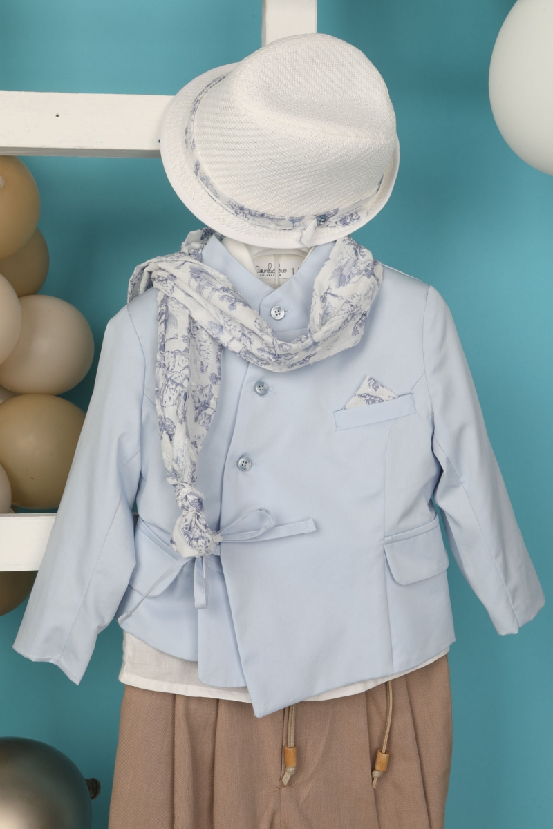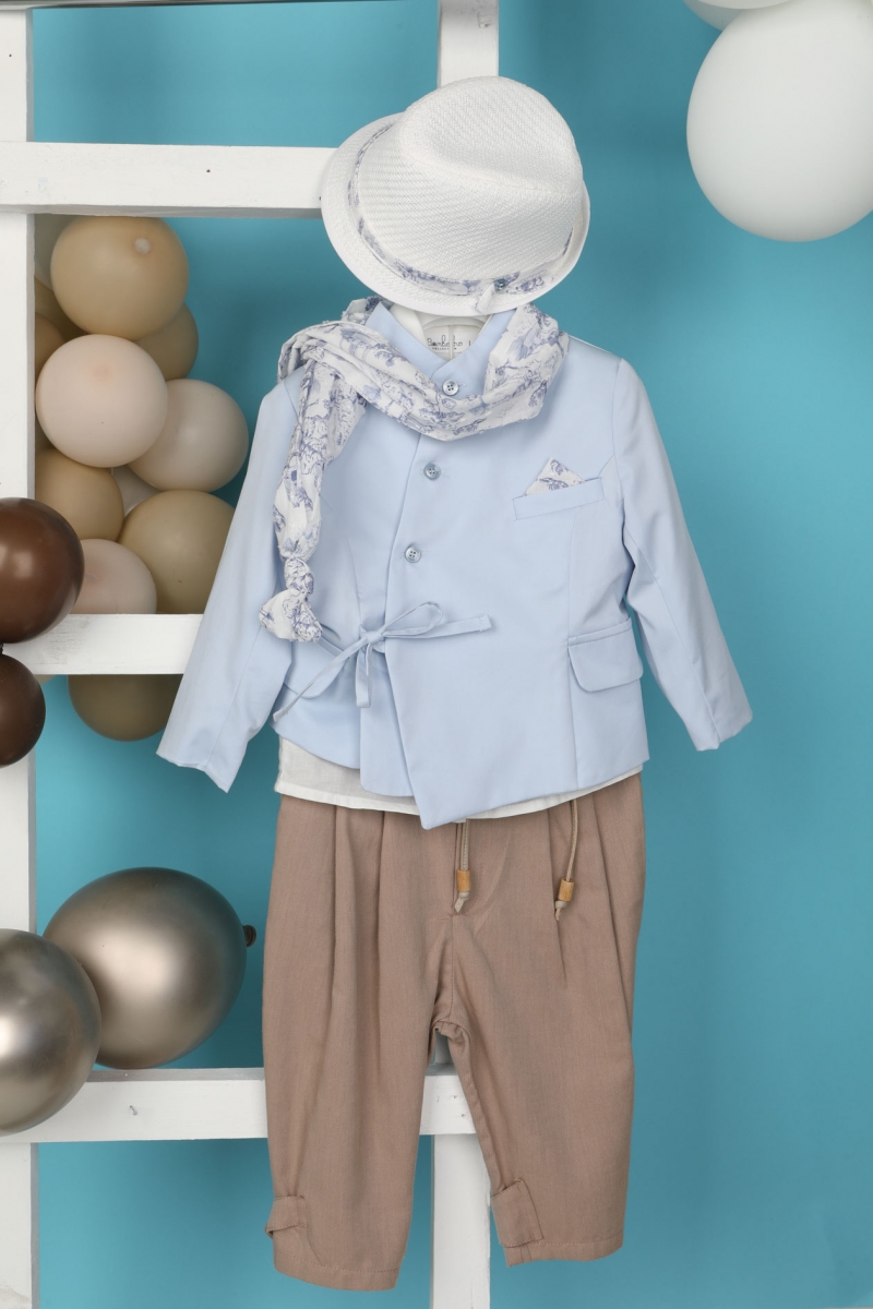 Ο Rocco είναι για τους λάτρεις του σακακιού με ιδιαίτερη φινέτσα. Αποτελείται από καφέ παντελόνι, εκρού βαμβακερό πουκάμισο και σιέλ καπαρντίνα σακάκι το οποίο είναι διακοσμημένο με κουμπιά , έχει τσέπες στο πλάι και δένει με κορδόνι. Αξεσουάρ είναι το μπεζ κορδόνι για ζώνη, το λευκό καπέλο και το στυλάτο φουλάρι του.